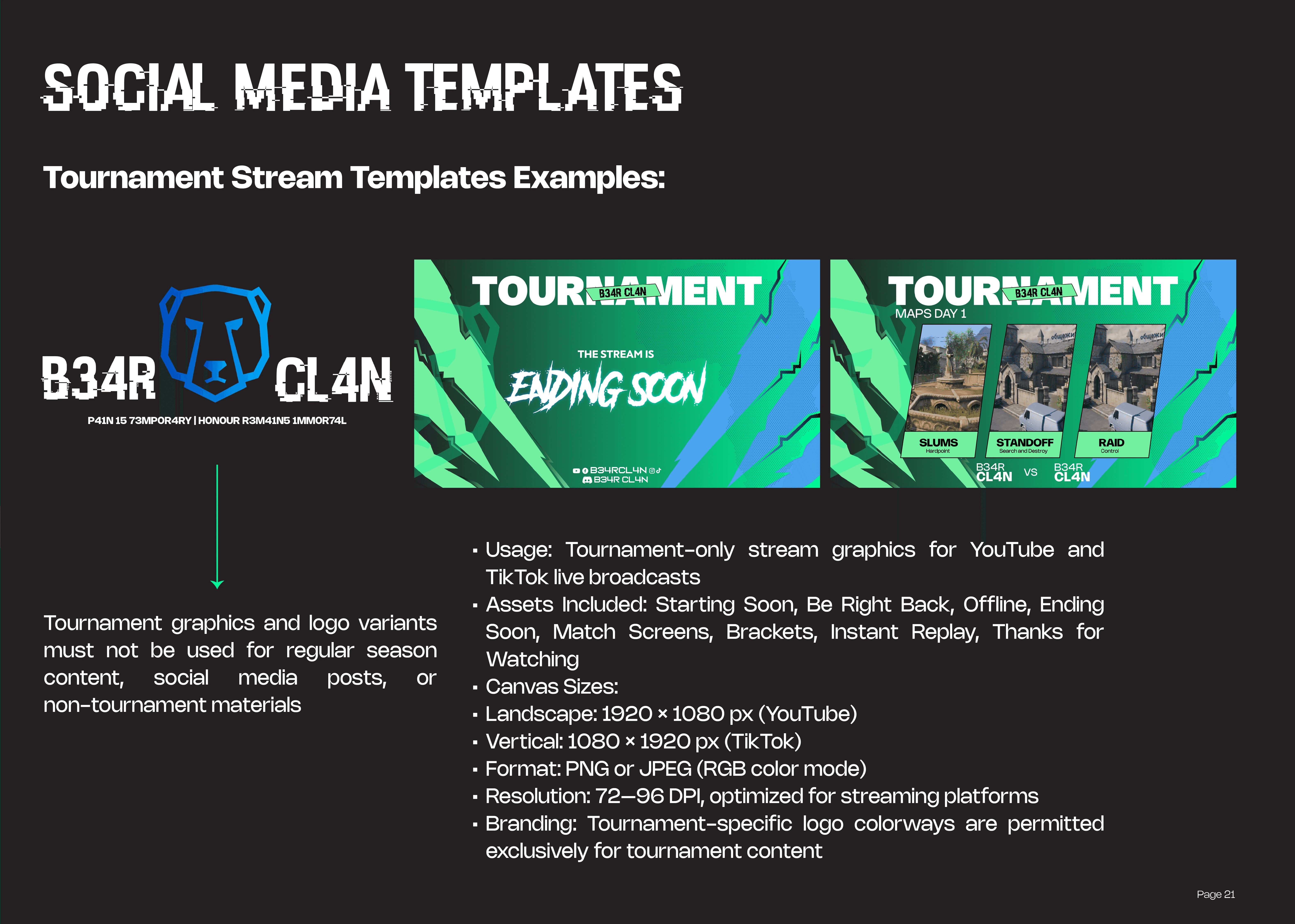 The goal of this project was to create a bold and adaptable identity system that captures the intensity of competitive gameplay while maintaining clarity across digital platforms. The design direction focuses on strong visual impact, using high-contrast elements, structured layouts, and a commanding logo presence.