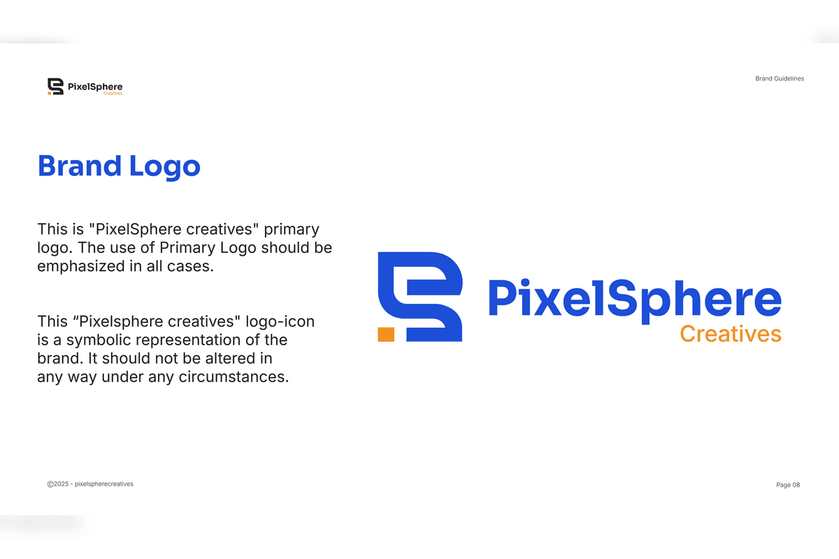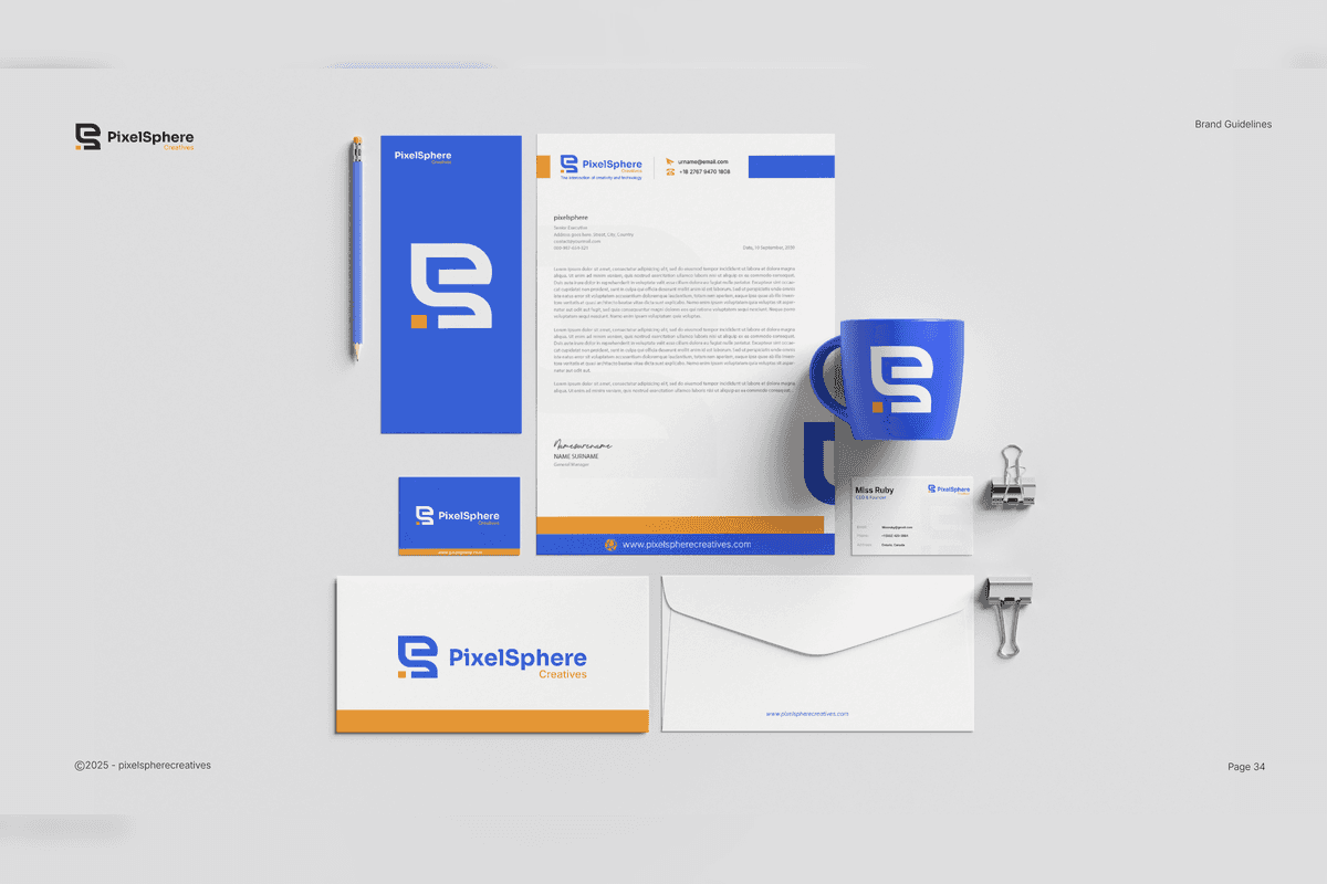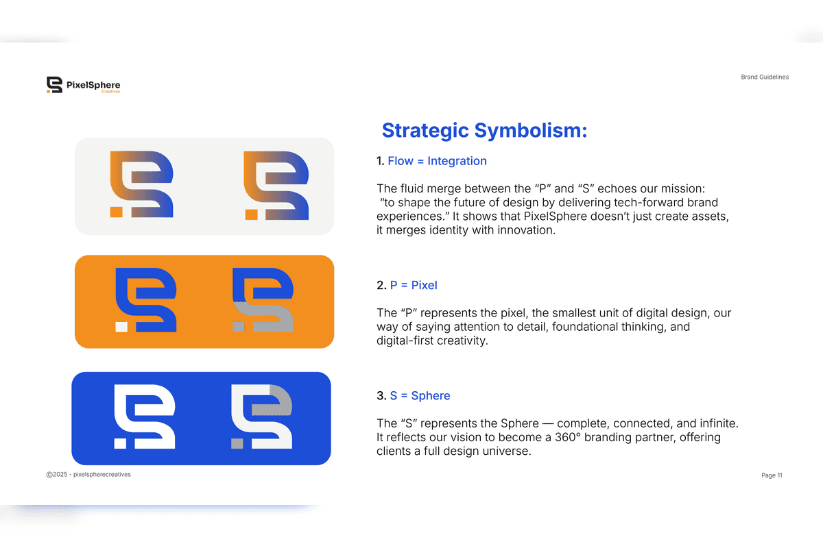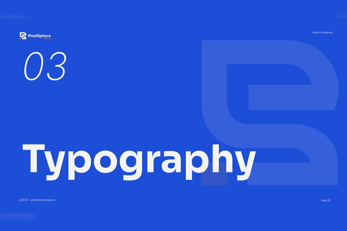 The result is a cohesive and scalable brand system that strengthens PixelSphere’s positioning as a modern, professional, and growth-focused agency — ensuring consistency across all platforms and future expansion.