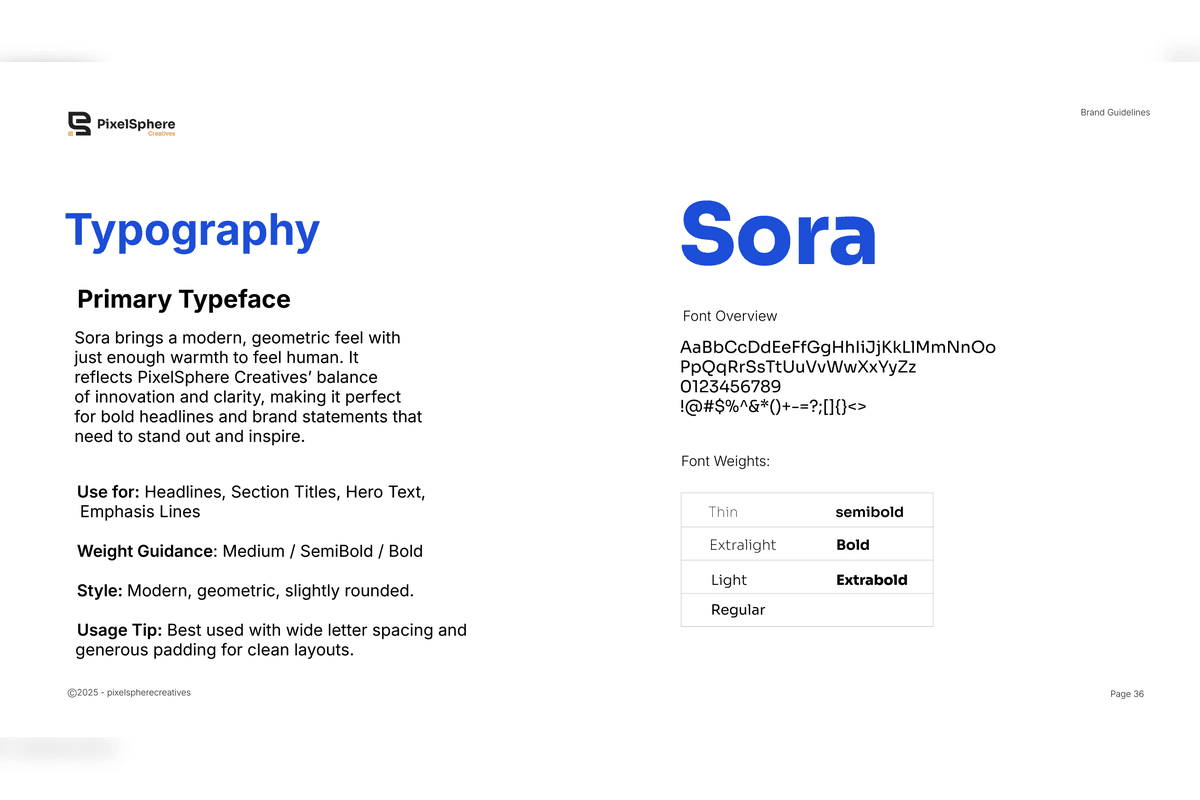 PixelSphere Creatives is a branding and digital growth agency focused on helping businesses build strong, scalable digital presence. This project involved creating a complete identity system and brand guideline to bring clarity, consistency, and structure across all touchpoints.